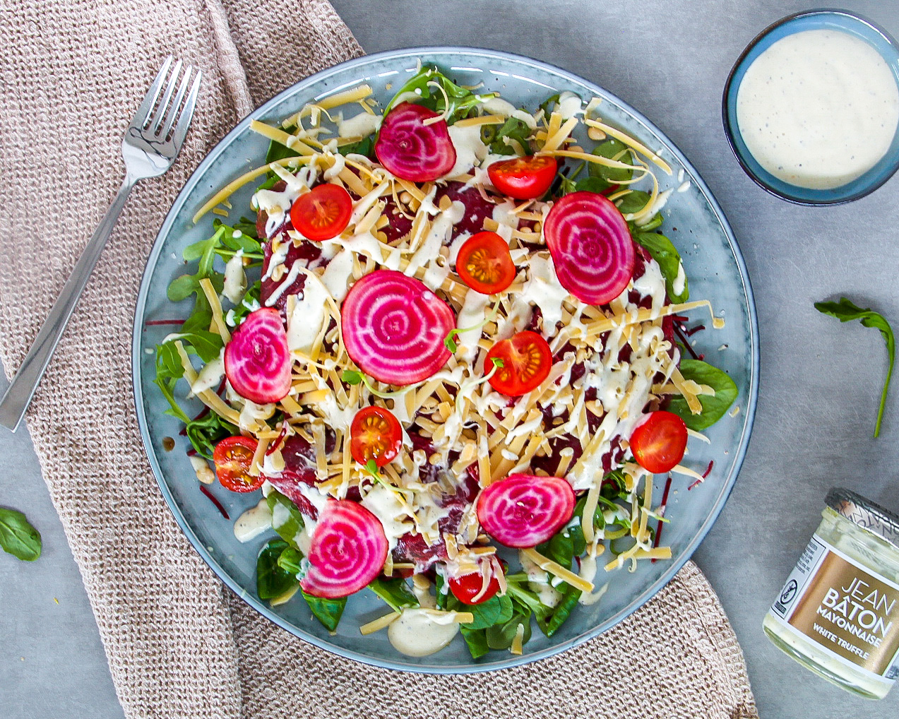 Zin in een salade die nét even chiquer is, maar nog steeds supermakkelijk om te maken? Deze carpacciosalade met truffelmayonaise is precies wat je zoekt. Fris, vol van smaak en met die heerlijke luxe twist van truffel: perfect voor een uitgebreide lunch, lichte avondmaaltijd of als impressie bij een etentje. Geloof ons: dit is zo’n gerecht dat altijd in de smaak valt.