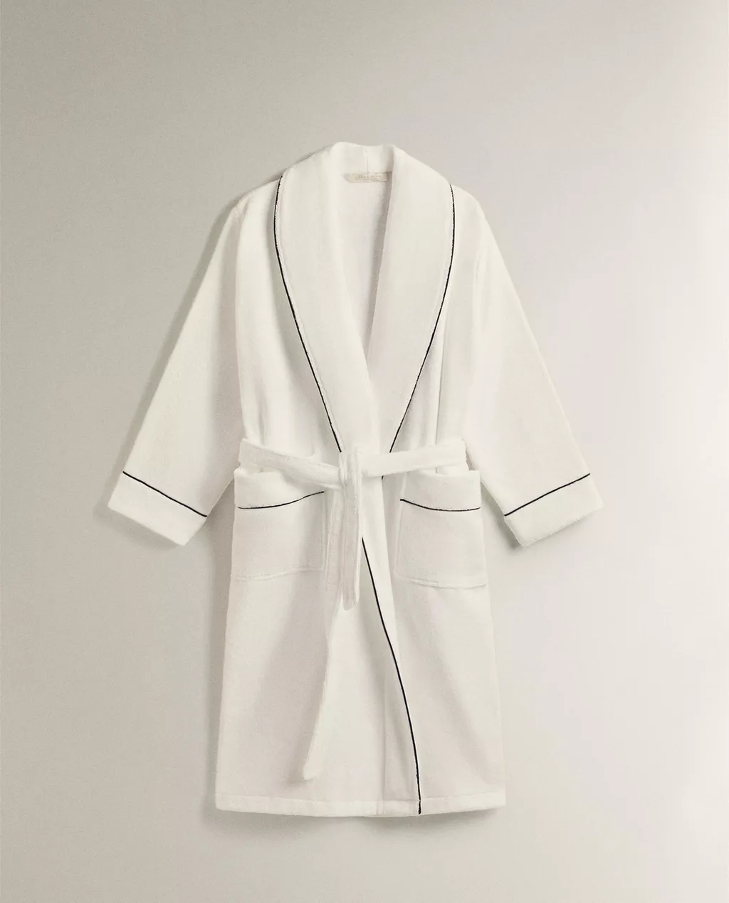 Een katoenen badjas met contrasterende biesjes die zorgt voor een subtiele, stijlvolle twist. Tijdloos, fris en perfect voor wie houdt van een klassieke look met nét dat beetje extra. Je shopt deze badjas hier >