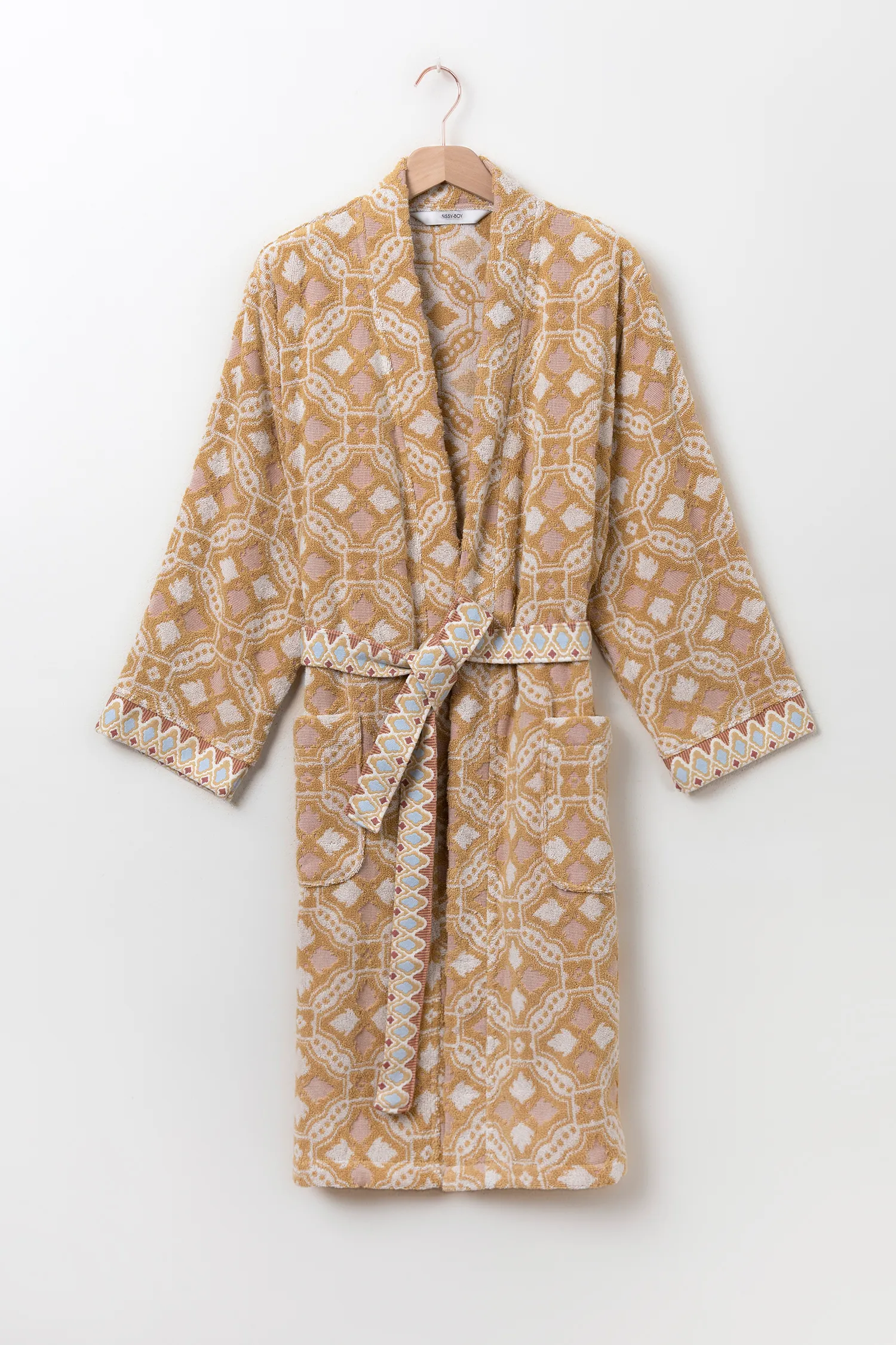 Met deze vrolijke, maar toch stijlvolle badjas van Sissy-Boy maak je van elke avond een knus moment. De stevige, warme stof zorgt voor ultiem comfort, terwijl het speelse kleurenpalet en het elegante patroon meteen opvallen. Het design met een Spaanse touch laat je even wegdromen, alsof je je op een zwoele dag in Sevilla bevindt, maar dan gewoon vanuit je eigen woonkamer. Shop m hier >