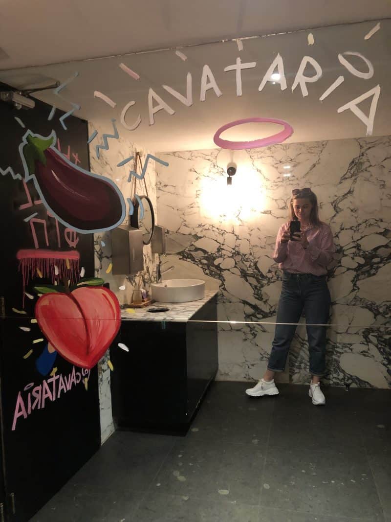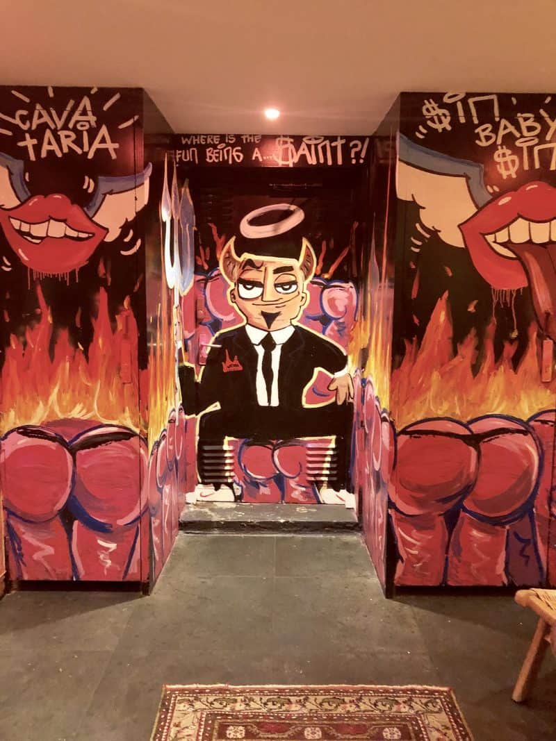 En dan hebben we het nog niet gehad over de -1 verdieping van de zaak. Waar je terecht komt via de ‘Stariway to Hell’. Dit is conceptueel toch helemaal awesome? Affin, op -1 vind je dus de gruwelijke toiletten. Of je nou toe bent aan een plaspauze of niet, sla een toiletbezoekje zeker niet over in Cavateria.